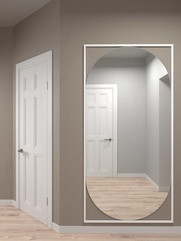 Дизайнерское настенное напольное зеркало Glass Memory Lustrous max в металлической раме белого цвета в Березовском